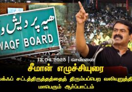 13-04-2025 வக்ஃப் வாரியச் சட்டத்திருத்தத்தைத் திரும்பபெற வலியுறுத்தி சீமான் ஆர்ப்பாட்டம்